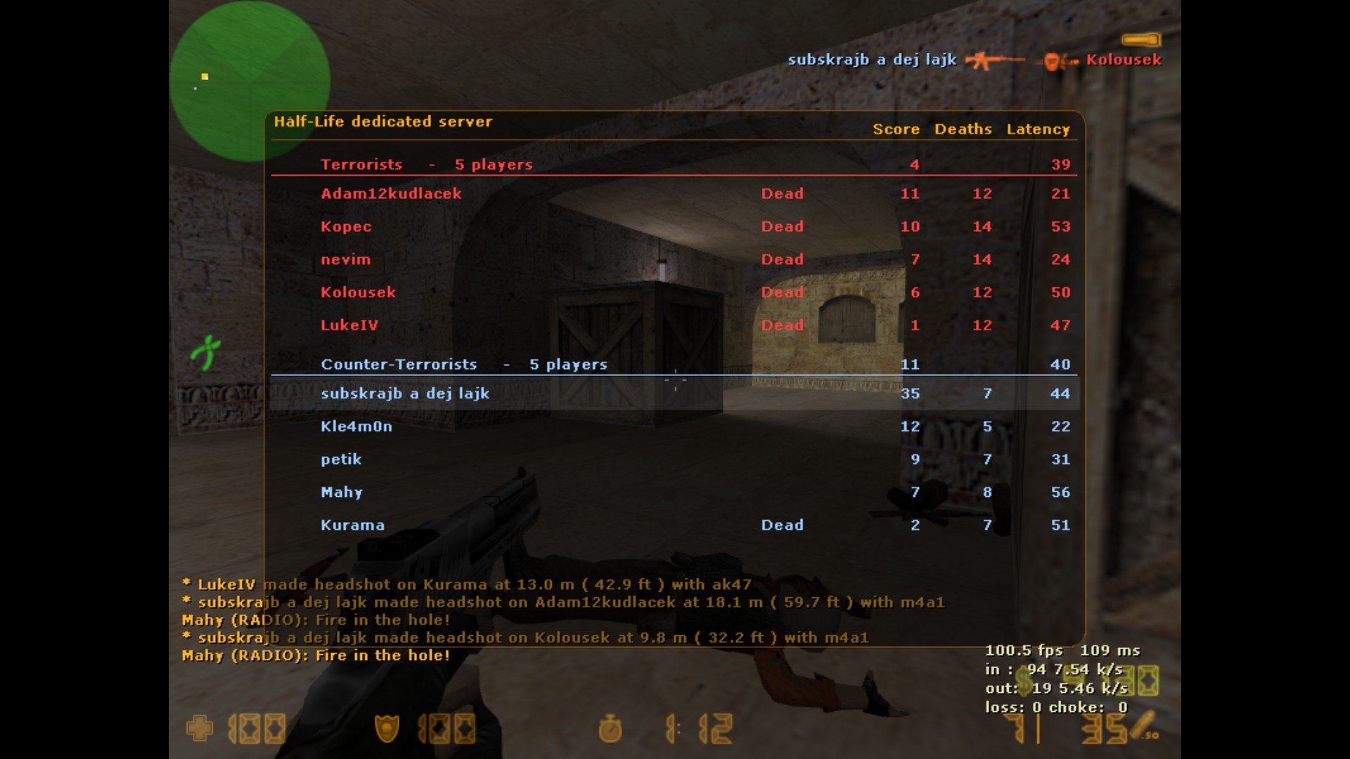 | Tým 2: On, sub-zero, Kopec, LukeIV, Kolouch | 11 |